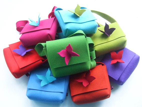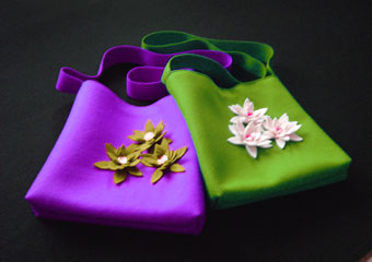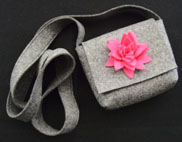 Wool Felt Bag with Flower and magnet fastening - Bag size approx 14cm