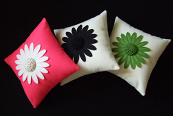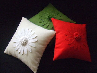 Wool Cushions (35cm x 35cm) with Hand made Felt Daisy available in a range