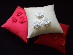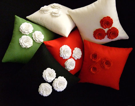 Wool Cushions (35cm x 35cm with Hand cut Felt Roses available in a range of