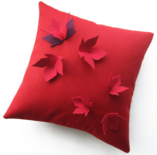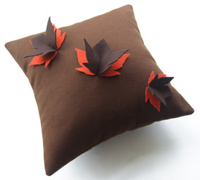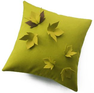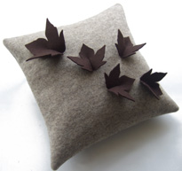 100% wool Cushion Cover 30 x 30 cm with 1 large and 4 small 3D Sycamore Leaves