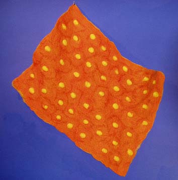 OCEAN SUNSHINE RUG Hand Felted Rug with Felted applique detail and orange sheepskin which adds comfort and texture. All Rugs are made to order, they can be made to your own colours and specifications. For more information or a quote please contact info@isolyn.com