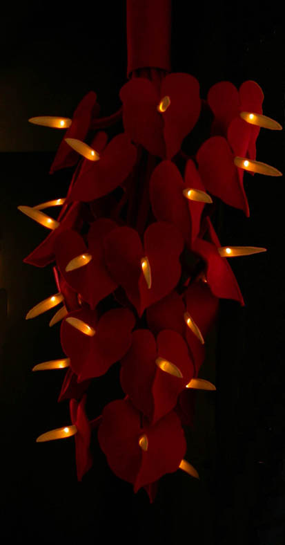 This felt flower chandelier contains yellow LED's, also available in blue, white, green and red LED's